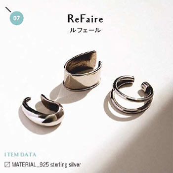 (右から)2イヤーカフ11,000円+税、プレートイヤーカフ16,000円+税ドロップイヤーカフ12,000円+税 / 以上ReFaire(UTSPR)