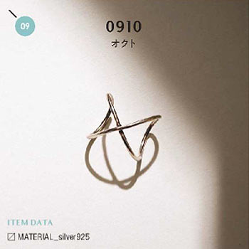 重ね付けせずとも、1つアクセントとして取り入れることで、どこか茶目っ気のある手元にアップデートしてくれる「0910」のアクセサリー。無骨なイメージのシルバーも柔らかく女性らしい印象に。