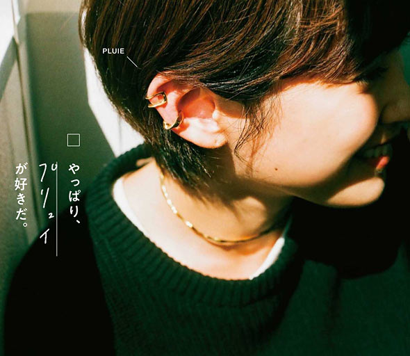 自然を感じる、ゆがみやねじれ。その二ュアンスが唯一無二なアクセサリーブランド「プリュイ」。個性的すぎない、自然な凹凸のあるデザインで、媚びてないのに女らしい印象に。
