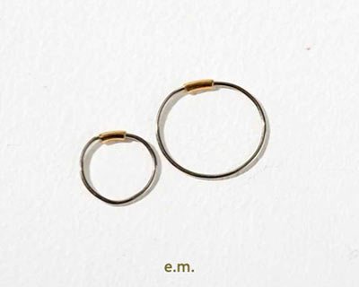 フープピアスは、太くて小さいのが今の気分。ハンドメイドで1点ずつ製作される東京ブランドのジュエリーは、それだけでコンテンポラリーなエッセンスをゲット!定番スタイルに微小な変化を与えてくれるはず。