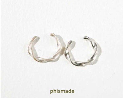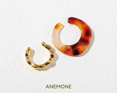 ゆるやかなねじれの流線型が美しいイヤーカフは、マットとツヤの仕上げの異なる2つがセット。同じ耳に重ねてつけても、左右バラバラにつけても、この少しだけ違う二ュアンスがこなれ度をアップさせてくれる。