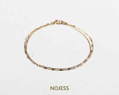 2種類のチェーンを使ったブレスレットは、手元を動かすたびにきらりと輝く表情の美しい逸品。チェーンの繊細さと2連デザイン、肌になじむゴールドカラーで、女性らしい華奢な手首に魅せてくれる。