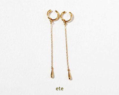 しずくのようなパーツが先端についた、ロングチェーンのイヤリングは、しとやかに揺れる様子がキレイ。ピアス見えするコンパクトな留め具だから、すっきりと身につけられるのもうれしい。