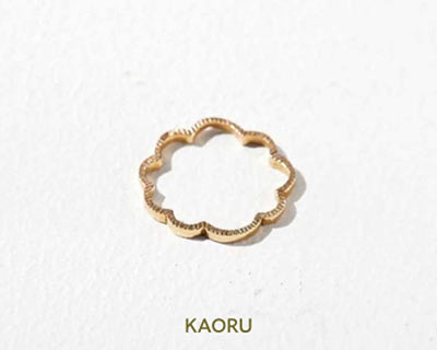 古き良きものを大切にする、京都生まれのブランドKAORU。ミモザの花をモチーフにした“MIMOSA”シリーズのリングは、装着すると花の形より、その丸みが際立って、ほどよい可愛らしさを醸し出すのにぴったり。