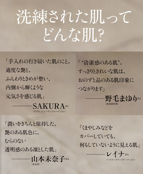 「ブラシの先にちょこっとつけるだけで、驚くほどにきれいにのびる。今まで経験したことのない上品肌に」