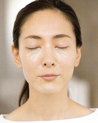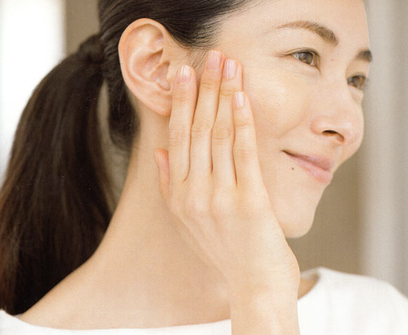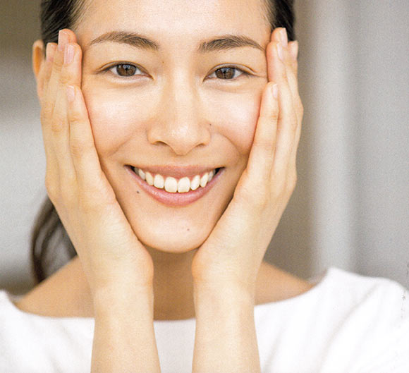 ブラシやスポンジでファンデーションを塗っても完成ではありません。最後にハンドプレスをしましょう。てのひらの温かさが加わり、ファンデーションが肌になじんで密着。くずれないように乾いた手で行ないます。このひと手間が、メークをくずれにくくし、仕上りを美しくします。