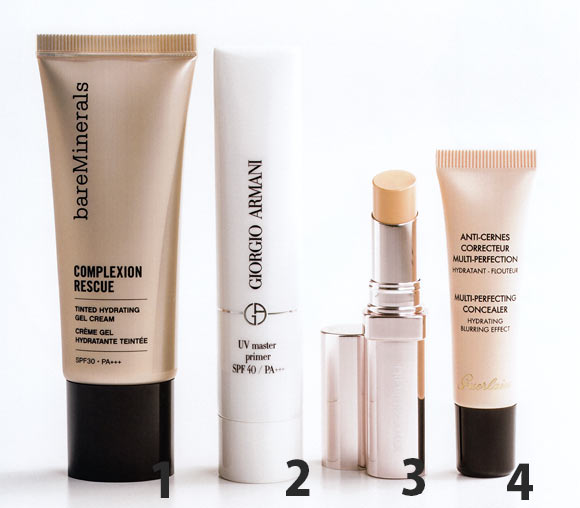 カジュアルウェアで過ごす日や、ファンデーションを塗りたくない日は、下地とコンシーラーで洗練された肌に仕上げましょう。