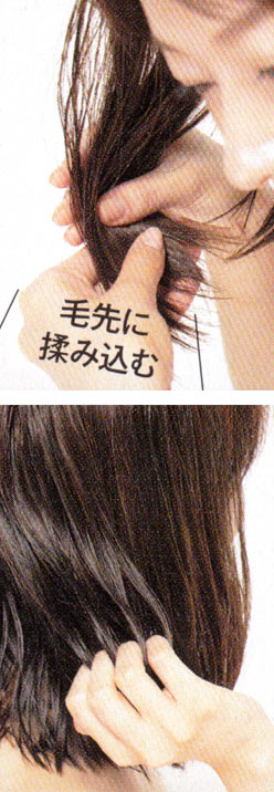 トリートメント剤を塗る前に、毛先を絞って余分な水気を落とす。このひと手間で、トリートメント剤がムダなく髪に浸透する。