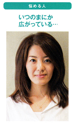 硬くて多めの髪は、うねりと立ち上がるような生えぐせがある。ブローしても気づくと広がりやすく、余計なボリュームが出てしまいやすい。