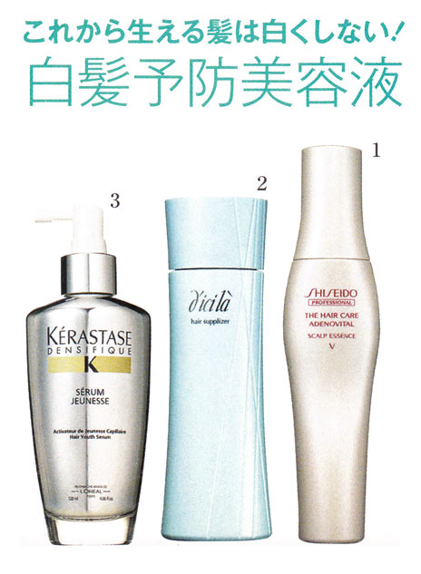 近ごろ、生え際とトップの分け目に出現。かき上げると見えるのでなんとかしたい。現状はやや暗めのカラー。あまり明るくせずにキープしたい。
