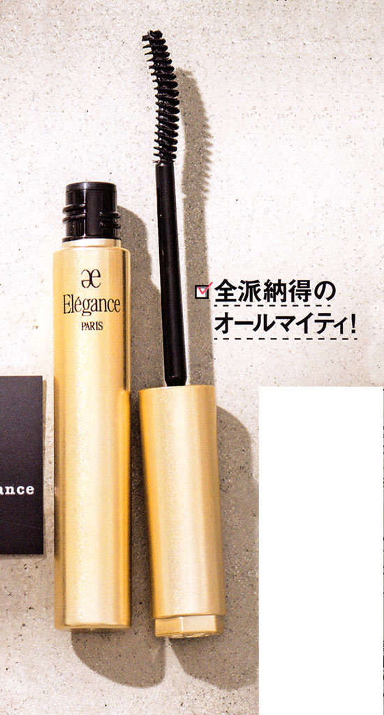 「下向きまつ毛でも重みに負けず上向きをキープされていたのが、エレガンス。仕事場の先輩からは、夕方なのに変化を指摘されたほど。妊娠中は、においに敏感になり、特にマスカラの薬品っぽい匂いがダメでしたが、エレガンスの香りはずっと嗅いでいられるほどいい香り?」