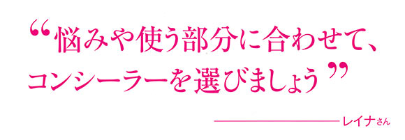 そんな大人の肌を救うのがコンシーラー。選び方と使い方を、ヘア&メイクアップアーティストのレイナさんに教えてもらいました。