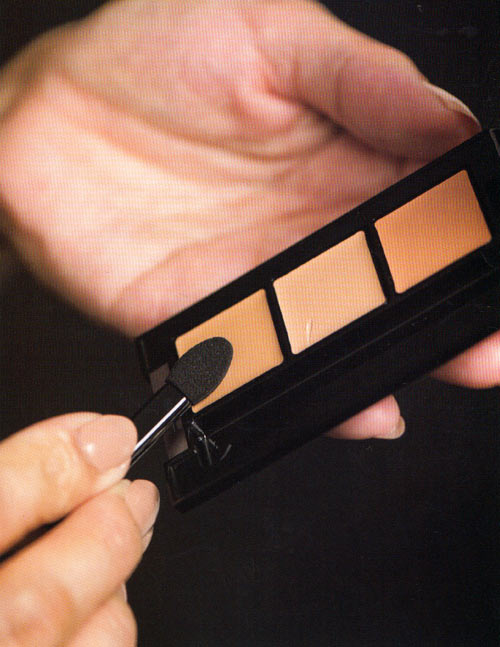 〈1〉固形タイプのコンシーラーを使用。アイカラーチップを使うと、適量がとりやすいそう。
