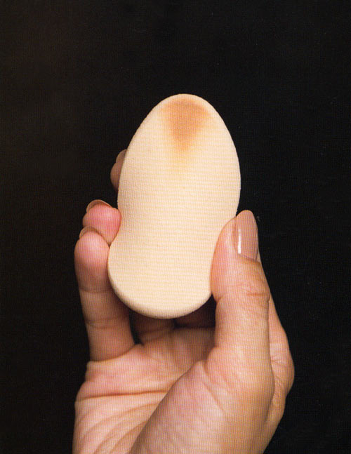 〈1〉ファンデーション用のスポンジに、固形タイプやスティックタイプのコンシーラーを少量つけます。