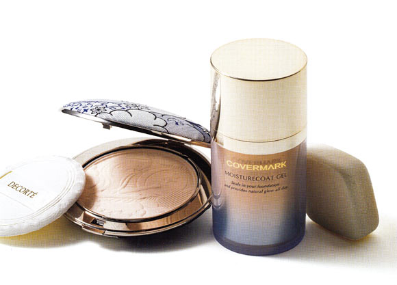 右・ファンデーションの後に使用するジェル状の仕上げ材。肌の潤いと美しさをキープ。