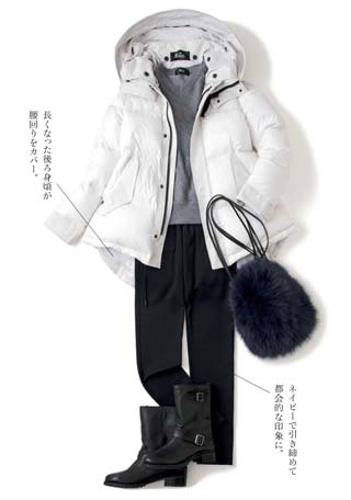 一周回って新しい! 復活ショート丈ダウンならどんなボトムスにも合う。