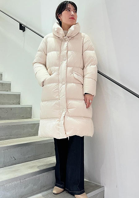 ステッチの幅が狭く、ボリュームを抑えることでスッキリと着られる人気の定番ダウンコート。