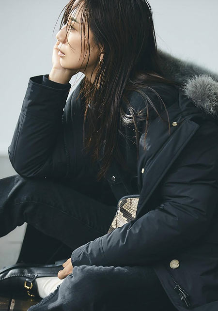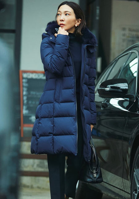ベルテッドマークしても着流してもサマになるレディ度満点なカラーダウン。一枚で絵になる存在感も魅力的で、佇む姿もドラマティックに…。