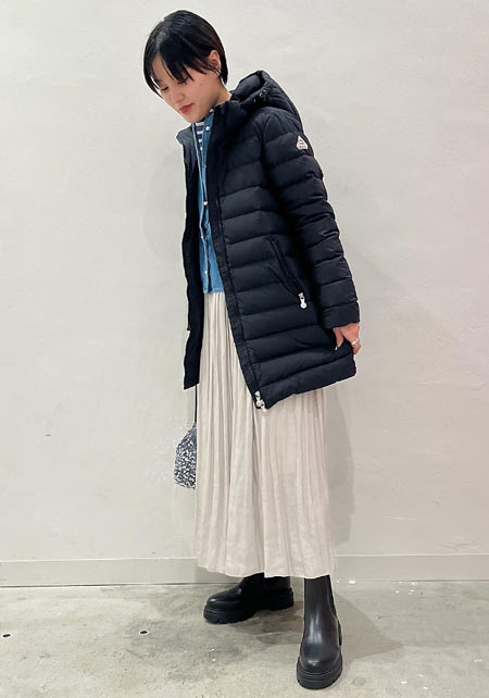 ヒップがちょうど隠れるセミロング丈。今季からヒップにゆとりを持たせたサイズに調整され、より重ね着がしやすくなりました。