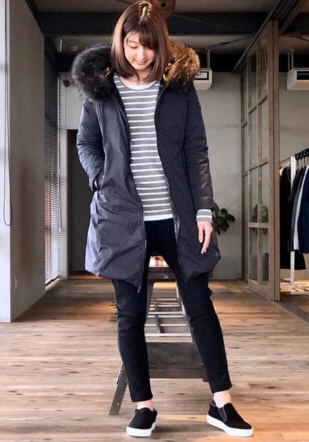 しかも驚くほど軽くて暖かいので、一度着たら手放せなくなる人が続出。ダブルジップはボトムスによって着こなしを変えられるから便利。ファーは取り外し可能です。