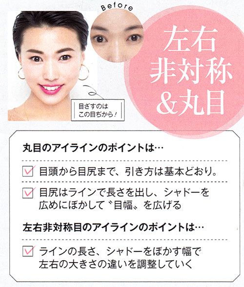 ちょっぴりさみしげで幼い印象だった丸目も横幅が出て深みが増すと、働くシーンにぴったりの大人な印象に。ナチュラルに目ぢからアップをかなえる決め手は、ライン×シャドーの絶妙なコンビネーションがあってこそ!