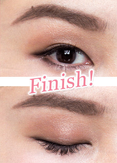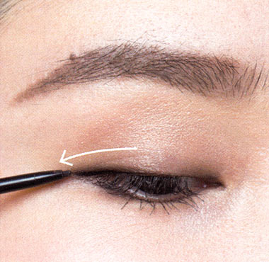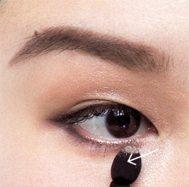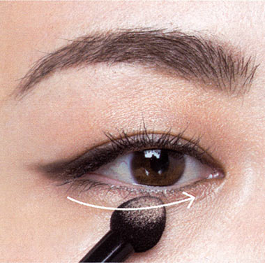 バランスをとる下まぶた際にも目尻から目頭に向かって、ライトブラウンのシャドーをぼかして。シャドー&ラインで引き締めた上まぶたとのバランスをとって、より目元を印象的に!