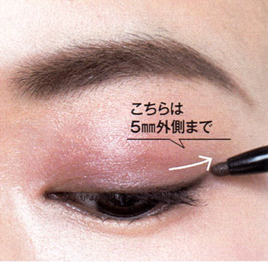 4.目尻は5mm外側に流して“目幅”を出す
