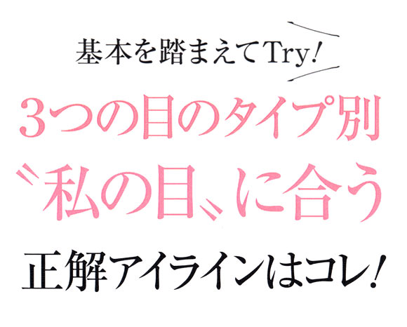 目の上の細い線ながらも、目をくっきりと見せ、顔立ちまで美しく際立たせてくれるアイライン。「なんとなく」引いているのでは効果半減。印象を上げたい大人こそ「正しいアイライン」を極めて、美人度アップを狙って。目のタイプ別に長さ、太さ、シャドーとのバランスをレッスン!