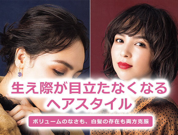 髪の分け目の目立ちや白髪は大人女性にとって死活問題。そこでボリュームのなさも、白髪の存在も両方克服できるヘアアレンジを提案。イベントやパーティのヘアにぜひ取り入れて!