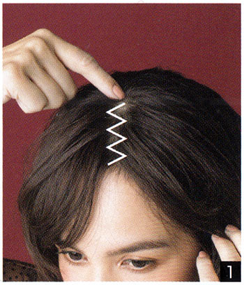 指先やコームの柄を使って、髪の分け目を細かくジグザグにとる。分け目がパックリと割れるのを防ぎ、髪の立ち上がりもサポート。