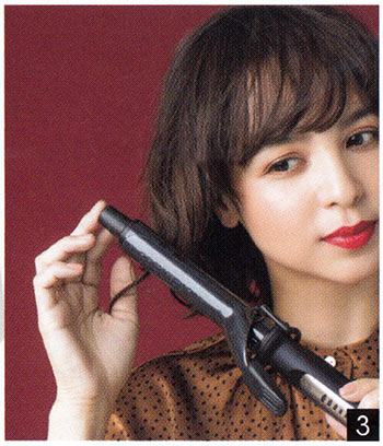 髪の内側に空気を含ませるスタイリングを。Cのフォームを髪の内側にもみ込みながら押し上げて、軽く左右に振る。