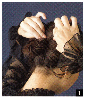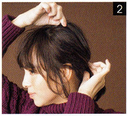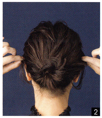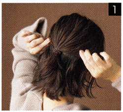 結び目を手でおさえながら、後頭部の髪を軽くひっぱって、ふっくらボリューム感を出す。