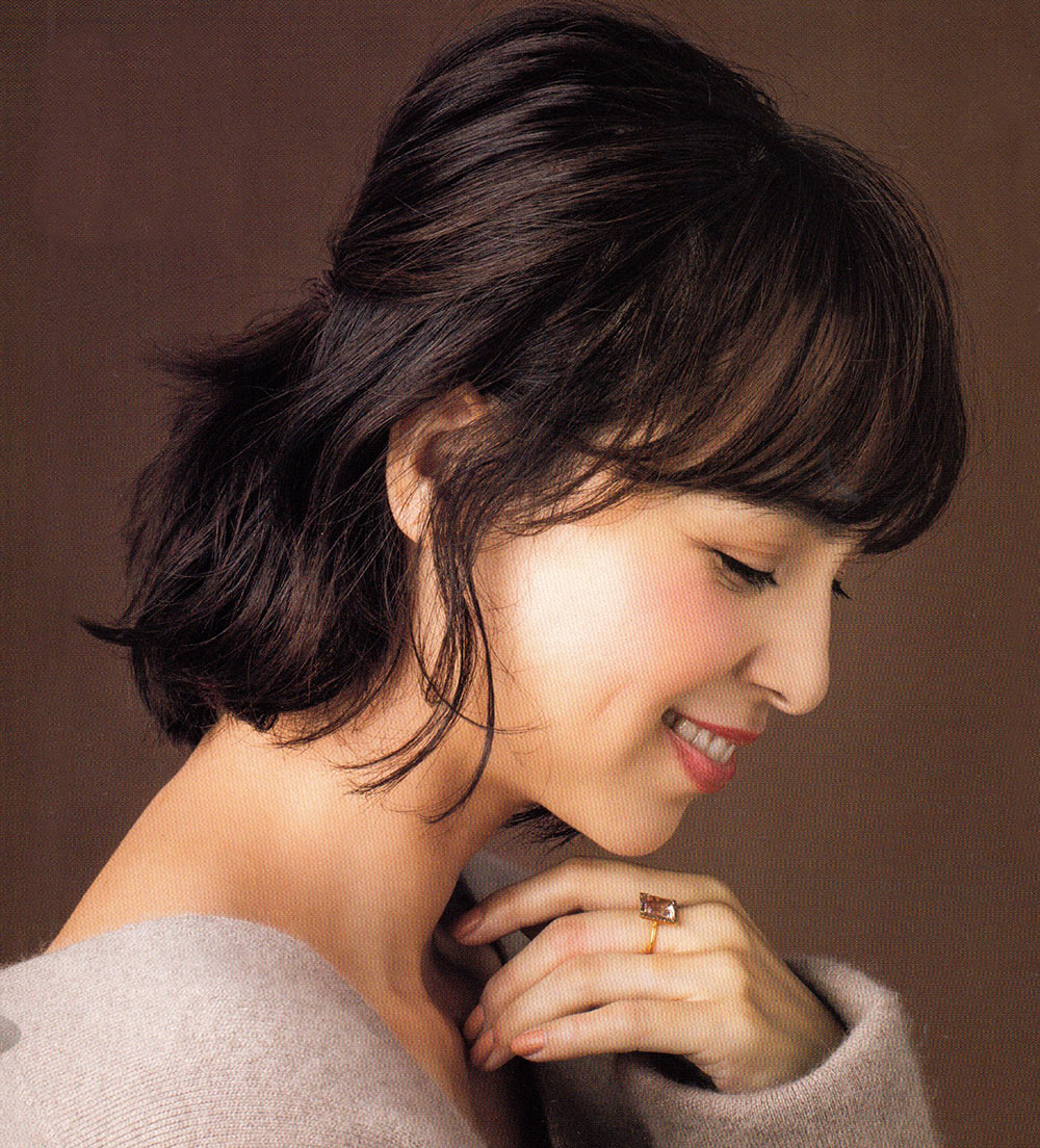 生え際も見せず、分け目もつけないフェミニン度大なハーフアップ。白髪カバー&ペタンコ髪の解消におすすめなヘアスタイルです。