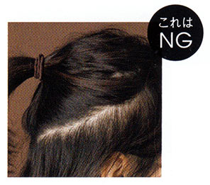 結んだ髪の分け目がくっきり見えるのはNG!白髪が目立ちやすく、薄毛感も出やすい。