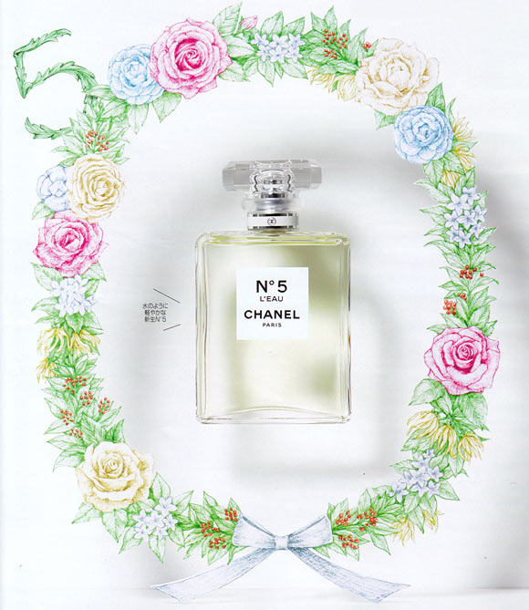 シャネルの名香「N°5」を、若き専属調香師オリヴィエ・ポルジュが新解釈。「ロー」とはフランス語で水のこと。その名のとおり、水のように透明感があり軽やか。
