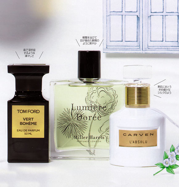 パウダリーな甘さではなく、シトラス、グリーン、ハーバルといった爽やかな香調が、花々のブーケをフレッシュに彩る。特別な日だけでなく、毎日使いたくなる、心地よく肌と一体化するナチュラルな香り。