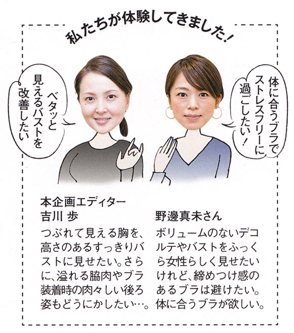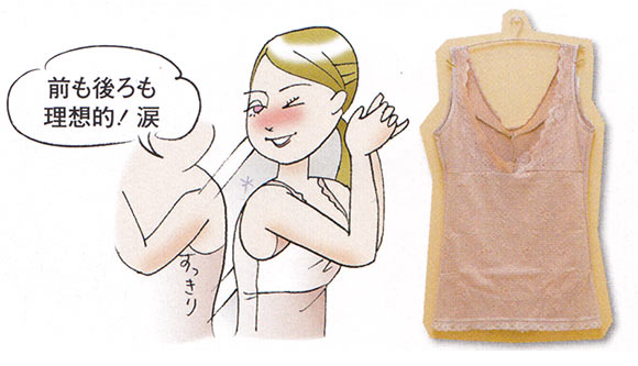 理想のバストラインを見つけたものの、ゆるんだ背中の贅肉が気になる吉川…。ブラに重ねる補整キャミソールに期待。