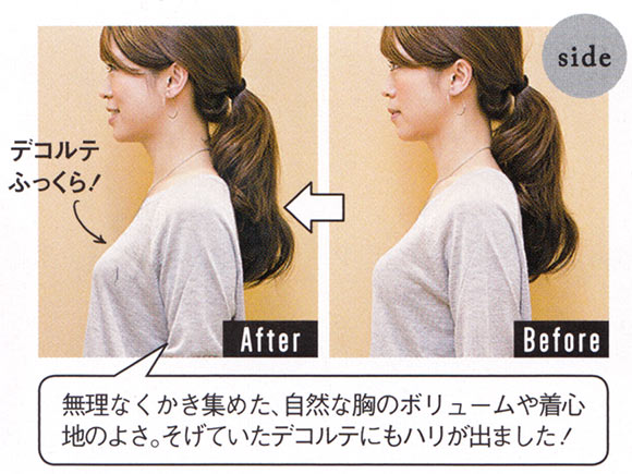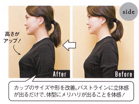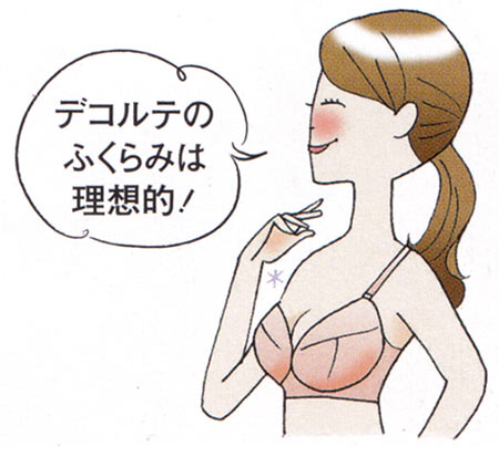 アンダーを完璧に合わせることで、カップを上げても脇から集めたバストがしっかりおさまり、デコルテもふっくら。
