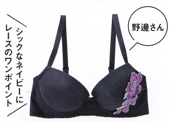 〈右〉『リズ シャルメル』の刺しゅう入りブラ。体に溶け込むようなつけ心地は、身につけているだけで癒されます。(メーカー勤務・37歳)