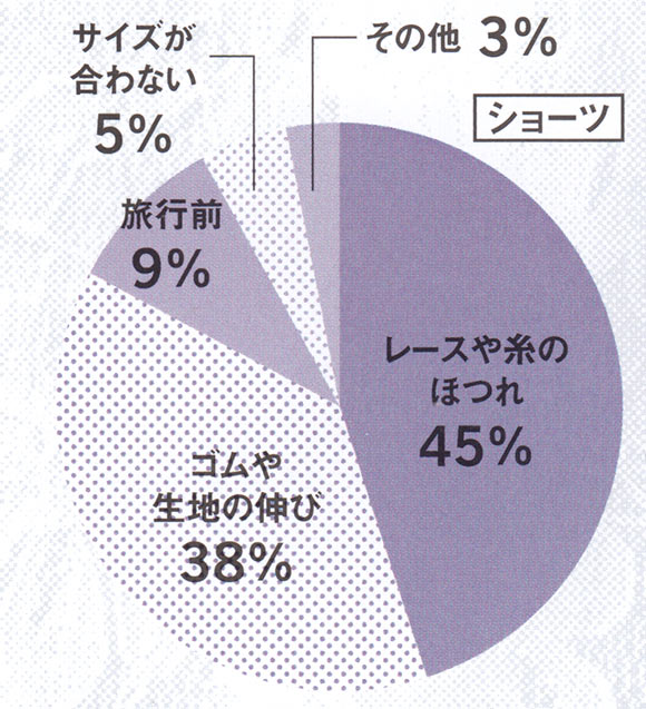 消耗を感じるも、捨てどきを逃すという声が多かったショーツ。アンケートで「はき古したパンツを医者に見られ恥をかいた」というコメントも…。