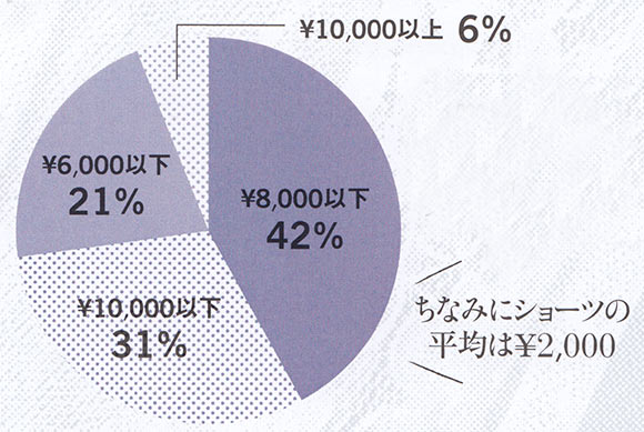 ブラの予算で最も多かったのは、6000円~7000円台。ショーツと合わせて約10,000円が上下セットの平均額。予算10,000円前後と答えた人は、インポートやセミオーダーを利用している人が多数。