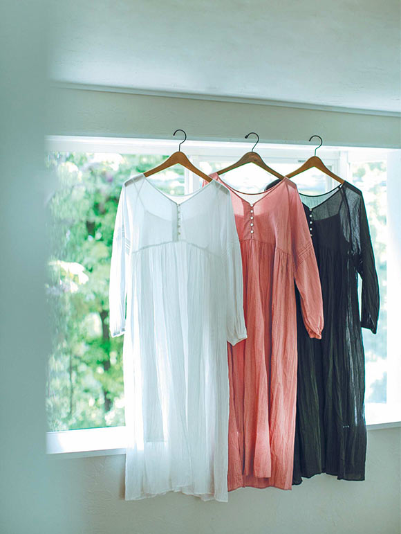日焼けや冷房による冷えを防ぐため、夏でも長そでをよく着るのですが、この長そでワンピースはおすすめポイントが満載。しわ加工が施されているので、アイロンかけはもちろん不要。きれいにたたむ必要もなく、くしゅっと丸めて収納できるのがラクチンです。インナーつきだから一枚で着てもいいし、インナーなしでデニムパンツやタンクトップに重ねて、透け感を楽しむのもいいですね。
