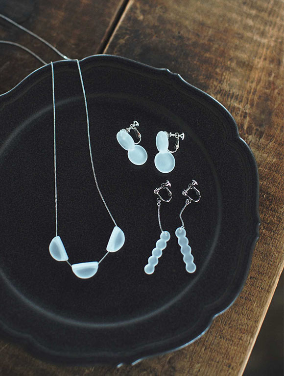 ハリオといえば、ティーポットやコーハヒー器具などでおなじみの耐熱ガラスメーカー。そんな老舗の技術がアクセサリー作りにも生かされているなんて驚きですよね。デザインが洗練されているのはもちろん、軽くてつけごこちもいいんです。修理もできるので長く使えるのもポイント。最近はマスクでメイクが楽しめないので、顔まわりを華やかにするアクセサリーは重要な存在。とくにこれからの季節、涼しげなガラスアクセサリーは大人っぽさや抜け感を演出してくれますよ。