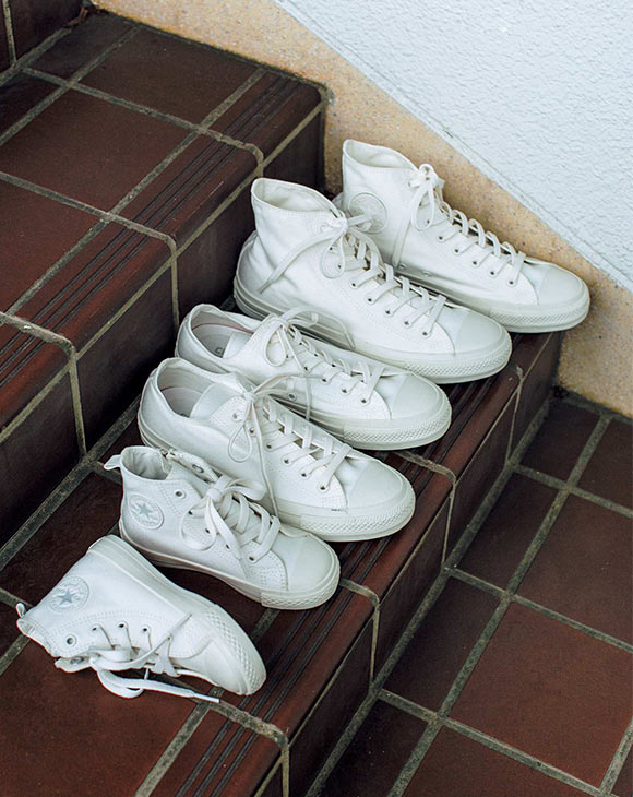 抗菌・抗ウイルス機能繊維加工技術を採用した「WHITE PLUS」シリーズ。代表的な「ALLSTAR」に加え、「JACK PURCELL」「キッズ」モデルでも展開。