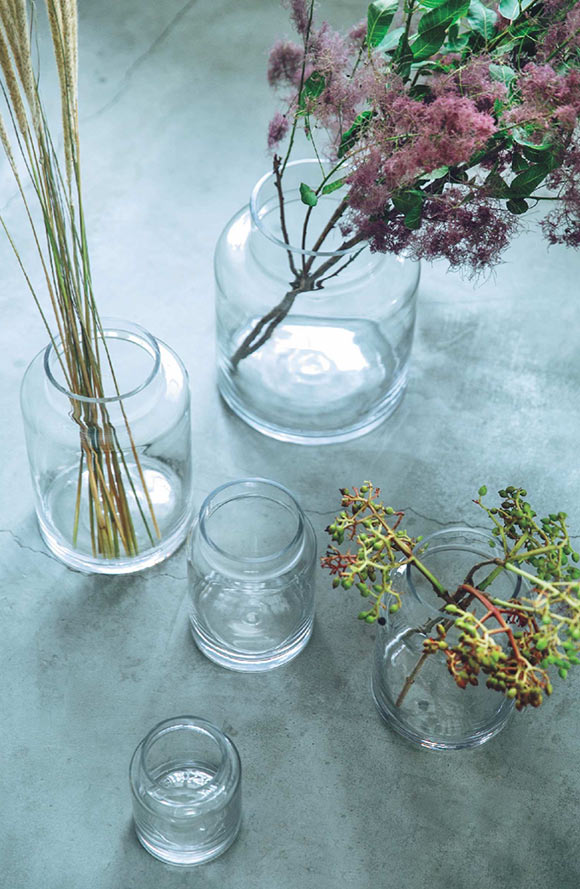 南青山の名店「Le Vesuve」が花屋の目線でセレクトしたフラワーベース。手吹きガラスならではのちょっとしたゆがみも魅力。上記の5種に加え、XXL(5280円)を入れた全6種類。