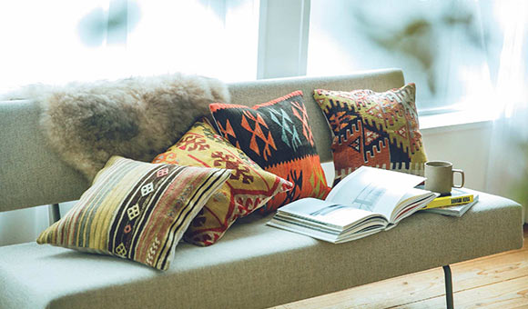秋も深まり、風が涼しくなってきましたね。おうち時間が長くなったいまだからこそ、お部屋も秋らしい雰囲気に変えてみませんか? 大がかりな模様替えは大変だけど、クッションカバーを替えるだけでも部屋の雰囲気は変わります。IDEEのクッションカバーは、一点物で柄の種類が豊富なのがうれしい。好みの柄をいくつか選んでコーディネートしてもかわいいし、無地のものと組み合わせても素敵です。温かみのある部屋にしたいなら、赤やイエロー系のものが◎。