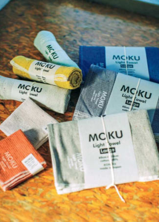 今治市の老舗タオルメーカー、コンテックスが使いやすさをとことん追求した「MOKUシリーズ」。薄手&軽量なのに吸水性は抜群。さらに部屋干しでも2時間ほどで乾く速乾性も特徴です。