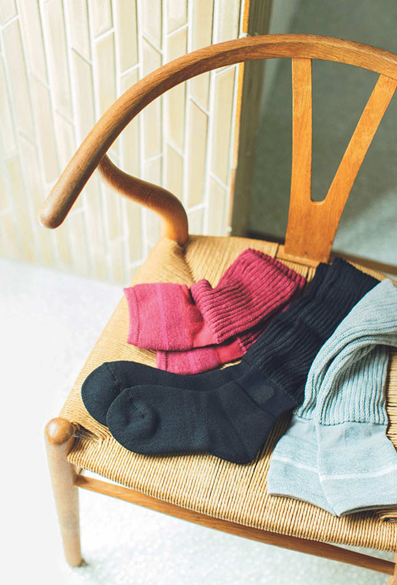 独自開発の特殊保温・発熱素材を使用。冷え性に効果的といわれている足首のツボ〈三陰交〉を温め、足もとをぽかぽかに。ソックスレッグウォーマー、足首ウォーマーの3種。