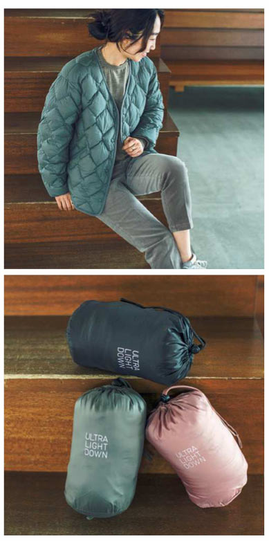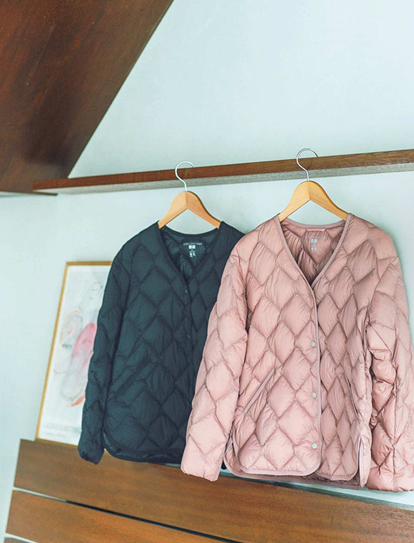 軽くて暖かい、でおなじみのユニクロのウルトラライトダウン。今回はキルトステッチが今っぽい、この秋の新商品です。アウターとしてはもちろん、首もとがV字にあいているのでコートの下に重ねやすく、秋から真冬まで出番の多い一着になりそう。使いやすいのは定番のブラックですが、そのほかもスモーキーなカラーリングで取り入れやすいので、トライしてみるのもおすすめです。