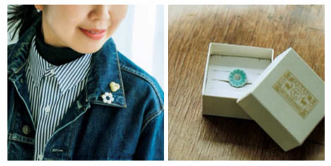 次々と服を買い替えることが当たり前ではなくなり、長く着られる服を持つという考えのかたが増えてきた気がします。手持ちの服を華やかに見せたいとき、頼りになるのがブローチやジュエリー。中川政七商店のピンブローチは、かわいらしいだけでなく、工芸品なので幅広い年代の人に似合うのも魅力。デニムジャケットやニットがおすすめですが、バッグや帽子など、小物にも合いますよ。たくさん種類があるから、好みのブローチで自分らしさを演出してみて。